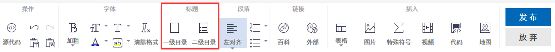 當編輯完詞條,點擊“發布”按鈕后,編輯器就會在詞條正文中自動生成一個目錄。目錄前半部分為詞條名稱,后半部分為您添加的目錄。